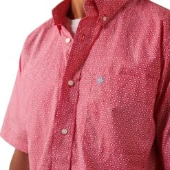 SKU: BGFTB 7222770139184 Categories: Button/Snap Shirts, Clothing, MEN Tags: 10043623, Clothing, Clothing:men, Color:Pink, Department:Men, Price_type:Regular, SC_Men's_Apparel_Ariat, Shirt_fit:Slim, Shirt_style:Button, Sleeve_length:Short, Style_number:10043623, Supplier:ail