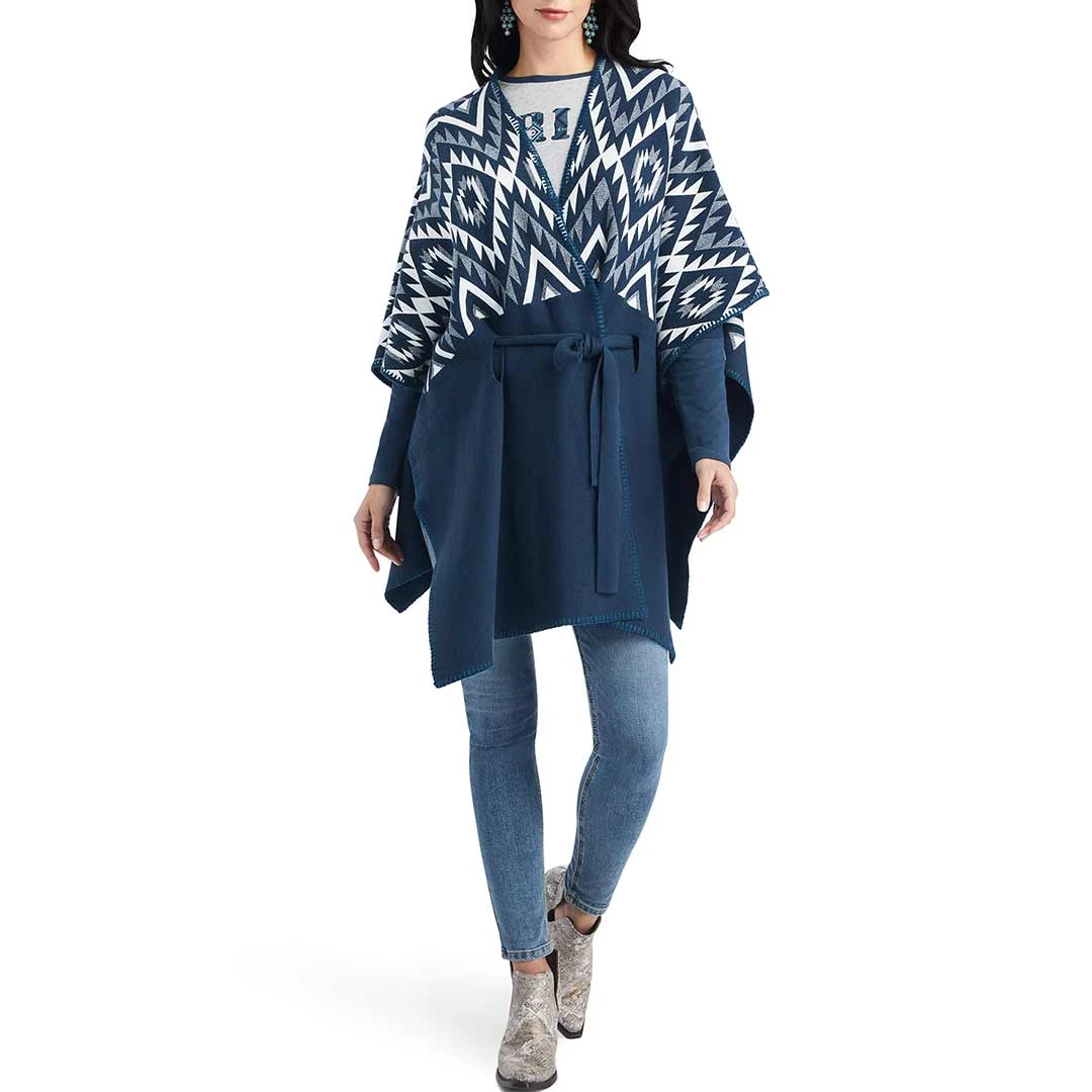 Whatever you have planned, this poncho-style wrap sweater is a great way to add a lot of warmth and a little southwestern style. A removable belt lets you personalize the fit, and add a little more shape when you’re dressing up.