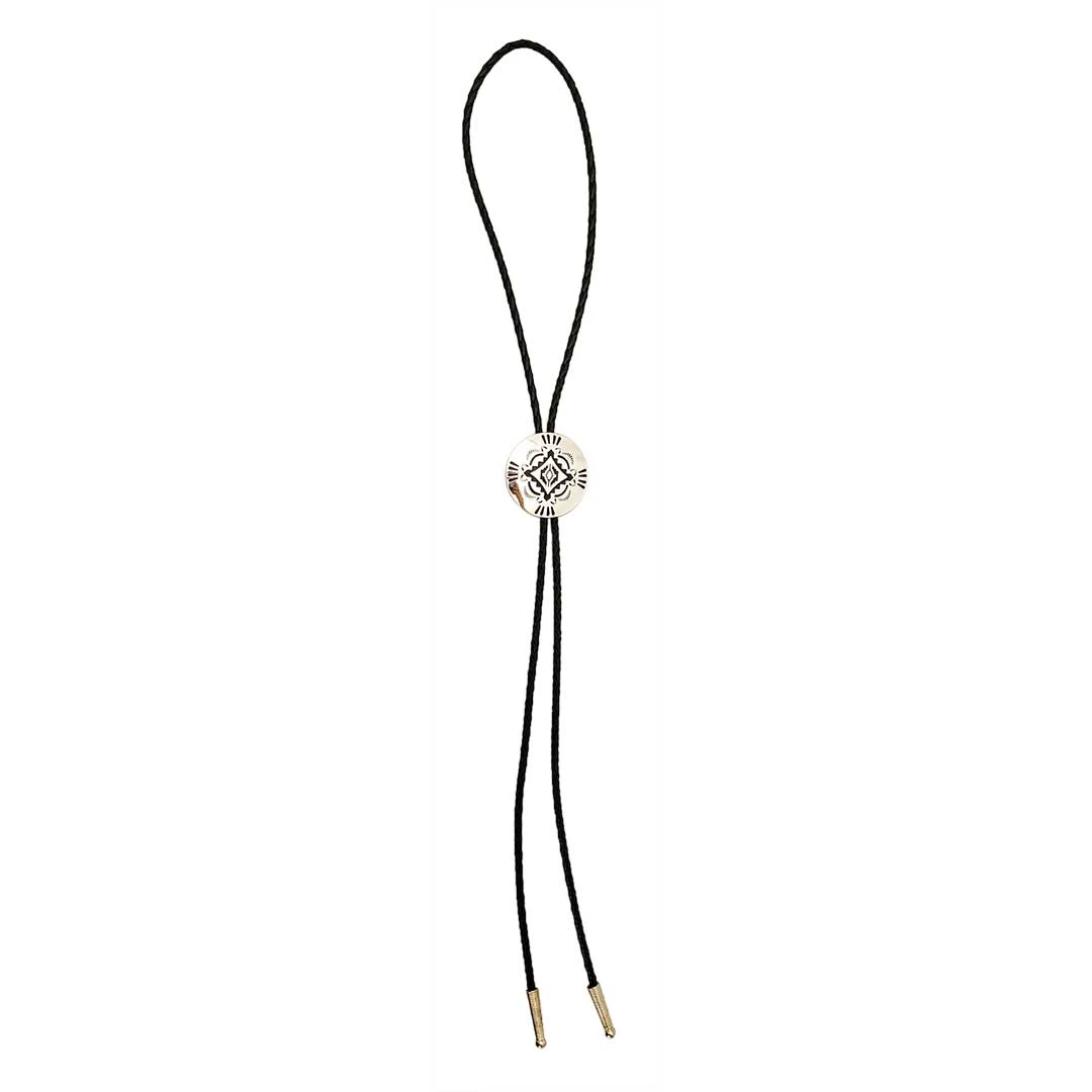 From Austin Accents, this southwestern silver concho bolo tie features black accents.