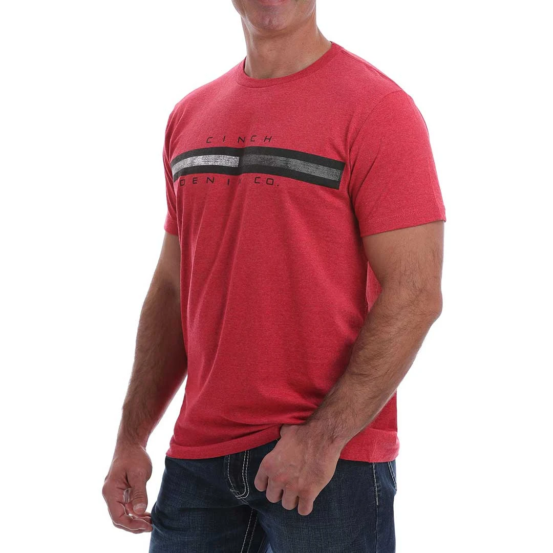 This tri-color cotton-poly jersey crew neck men’s tee from Cinch feels like an old favorite from the first wear. Heathered red with a front screen print, this tee works well solo or combined with your best jean jacket.