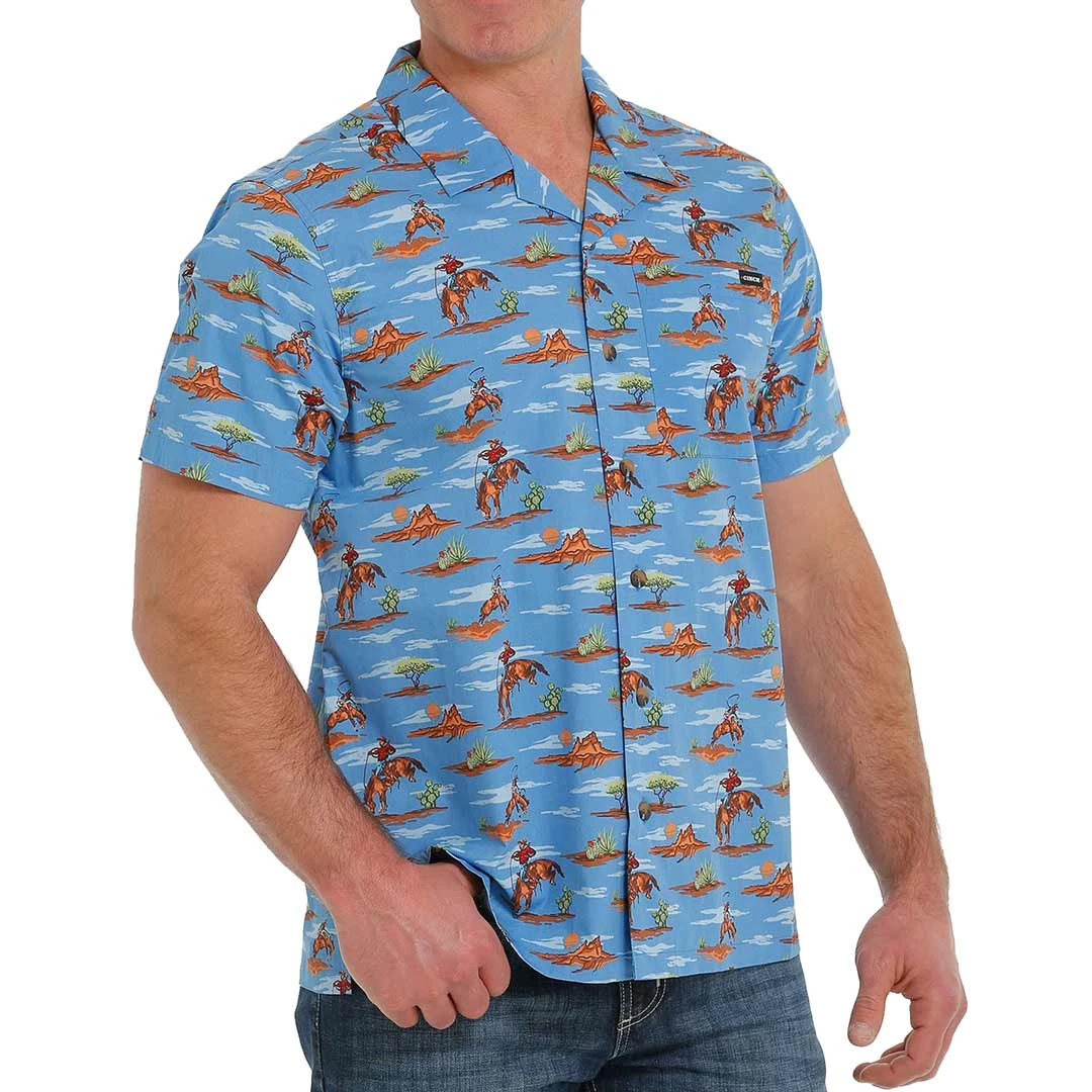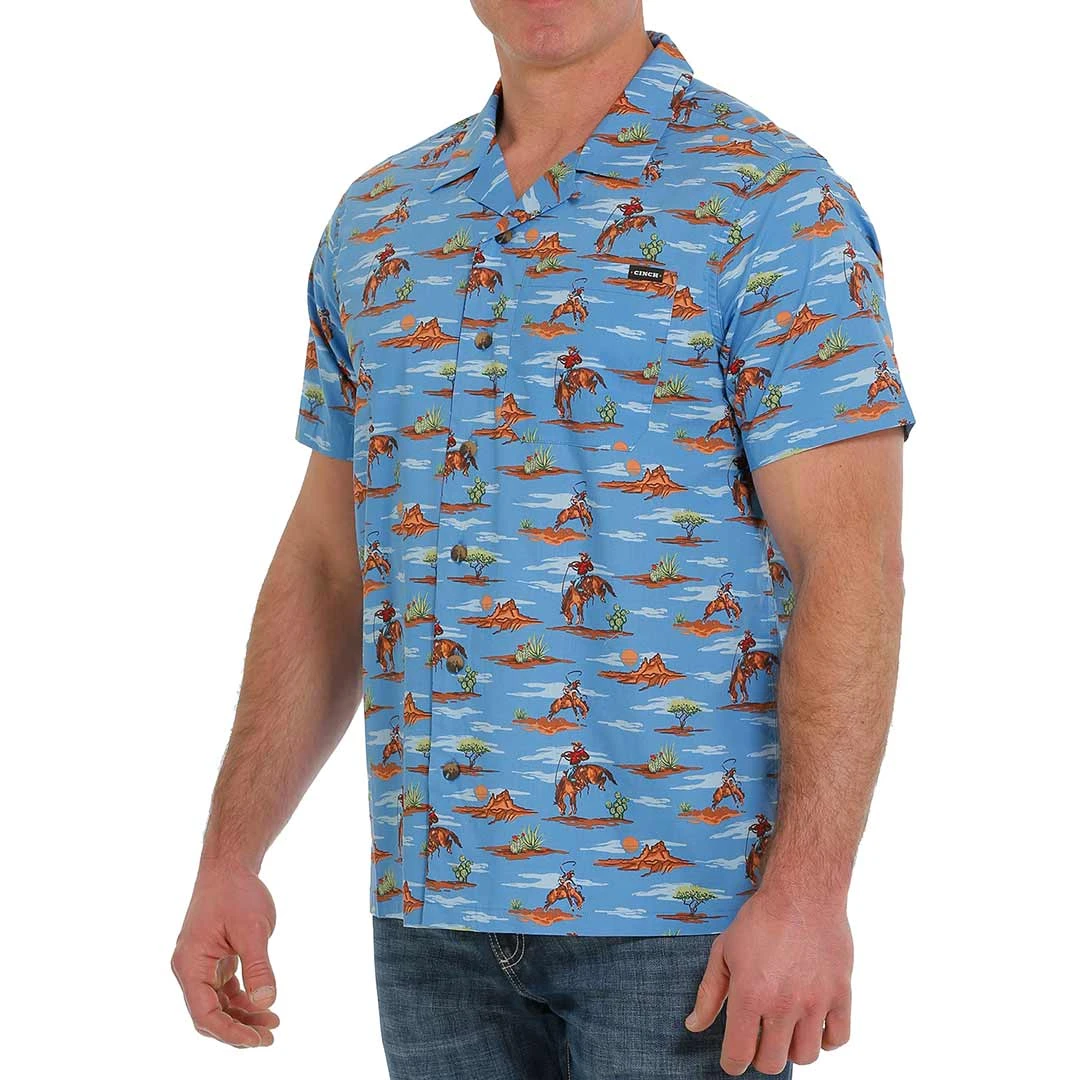 Cinch Men’s Cowboy Print Short Sleeve Button-Down Camp Shirt