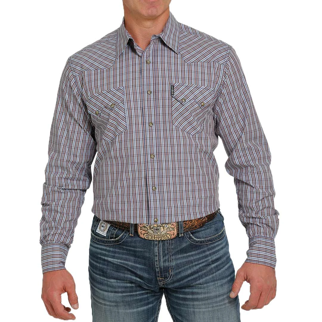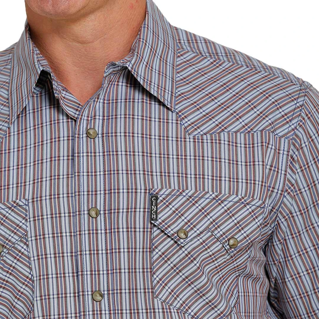 Cinch Men’s Modern Fit Check Stripe Snap Shirt