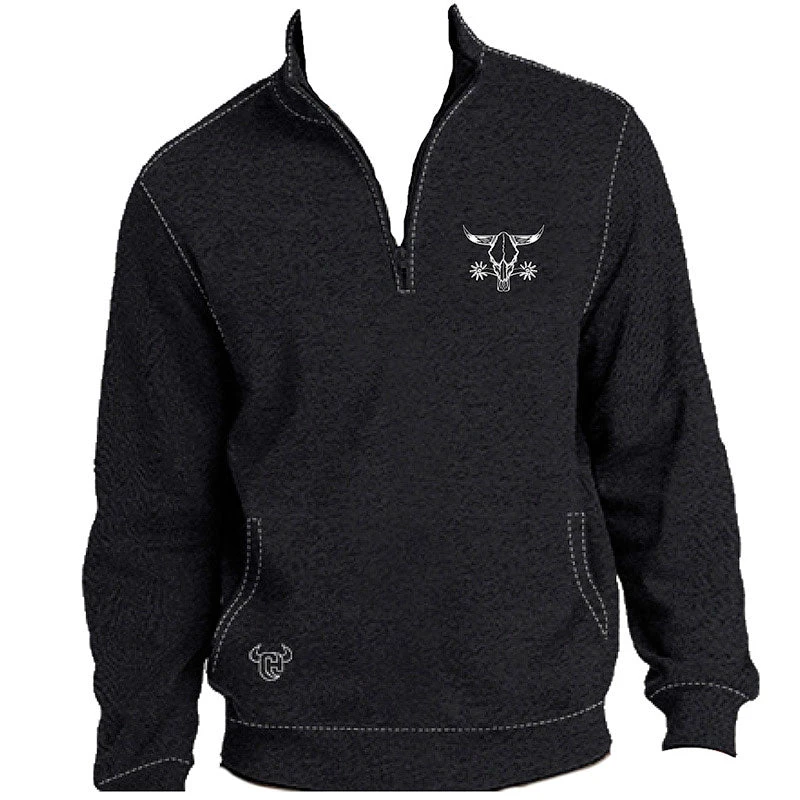 This Cowboy Hardware cadet features an embroidered barbwire skull design on the front left chest. The speckle fleece material with a 1/4 zip will keep you comfortable and warm all season long!