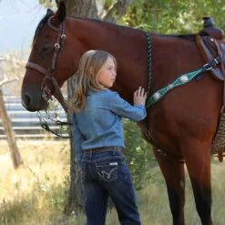 Foster her love for the ranching way of life with a timeless denim shirt that’s the cornerstone to every authentic cowgirl outfit. This indigo cotton chambray shirt features Western yokes, a spread collar, double front pockets and blue pearl snaps.