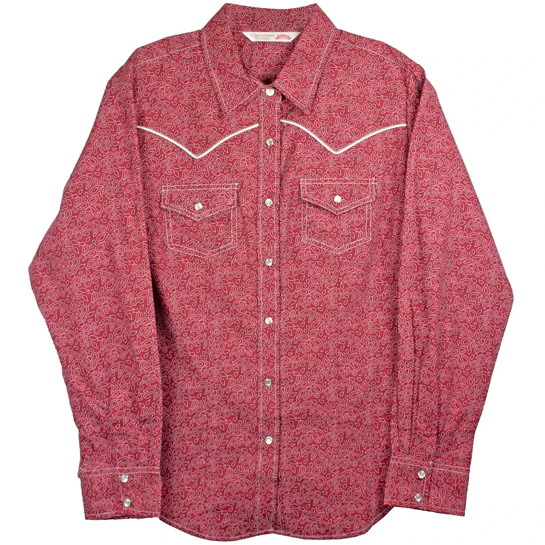 Cumberland Outfitters brings the fun with this women’s long sleeve wine paisley print shirt with pearlized western snaps. A great choice for all your spring and summer fun.