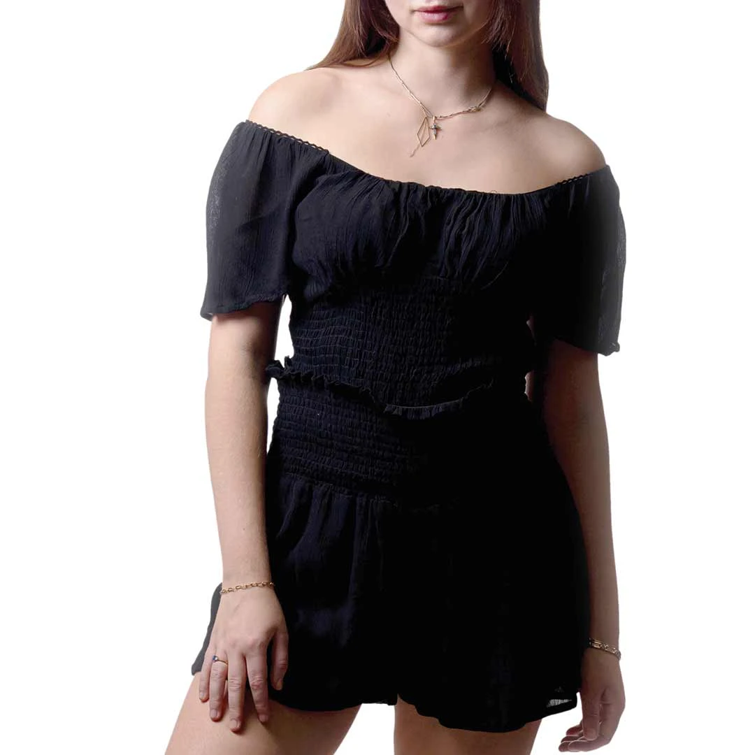 Be the first to review “EnKay Women’s Cropped Off-Shoulder Smocked Top” Cancel reply