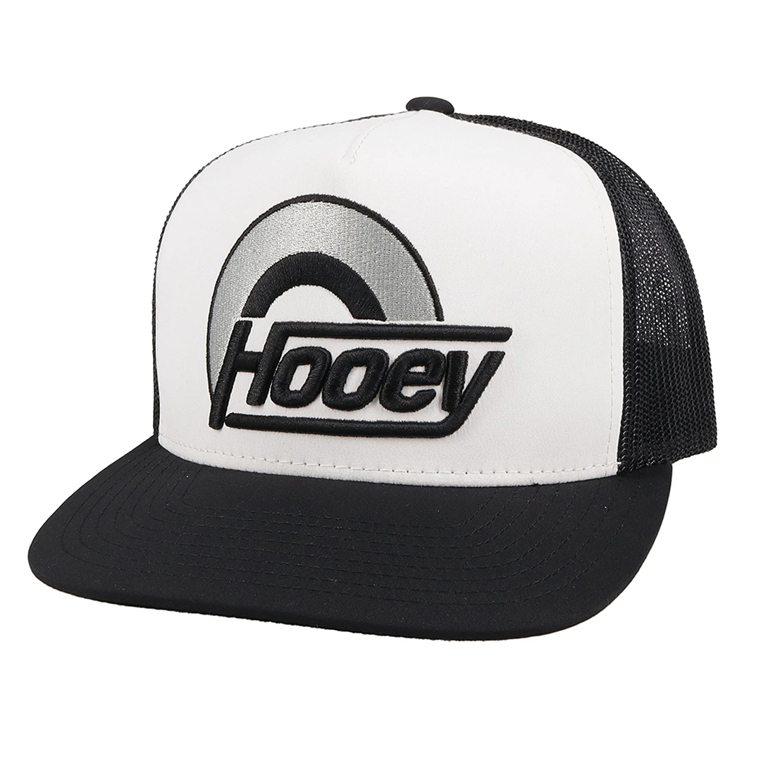 From Hooey, this classic snapback cap features a 5 panel high profile and hybrid bill. The black mesh back, black bill and embroidered logo patch contrast nicely with the white Odessa fabric crown.