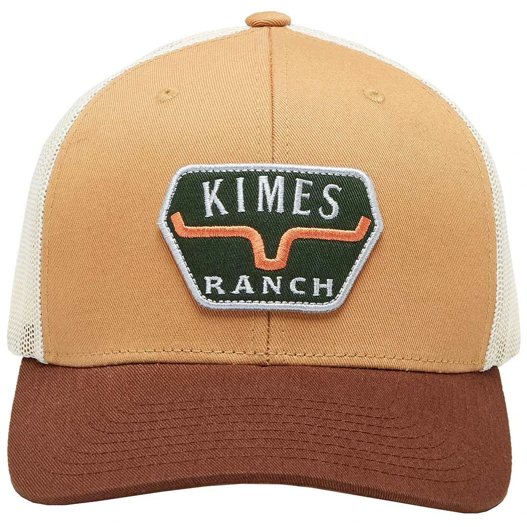 This trucker cap from Kimes Ranch features a curved brim and a twill logo patch. It has a classic 6-panel design, mid profile and an adjustable snap back.