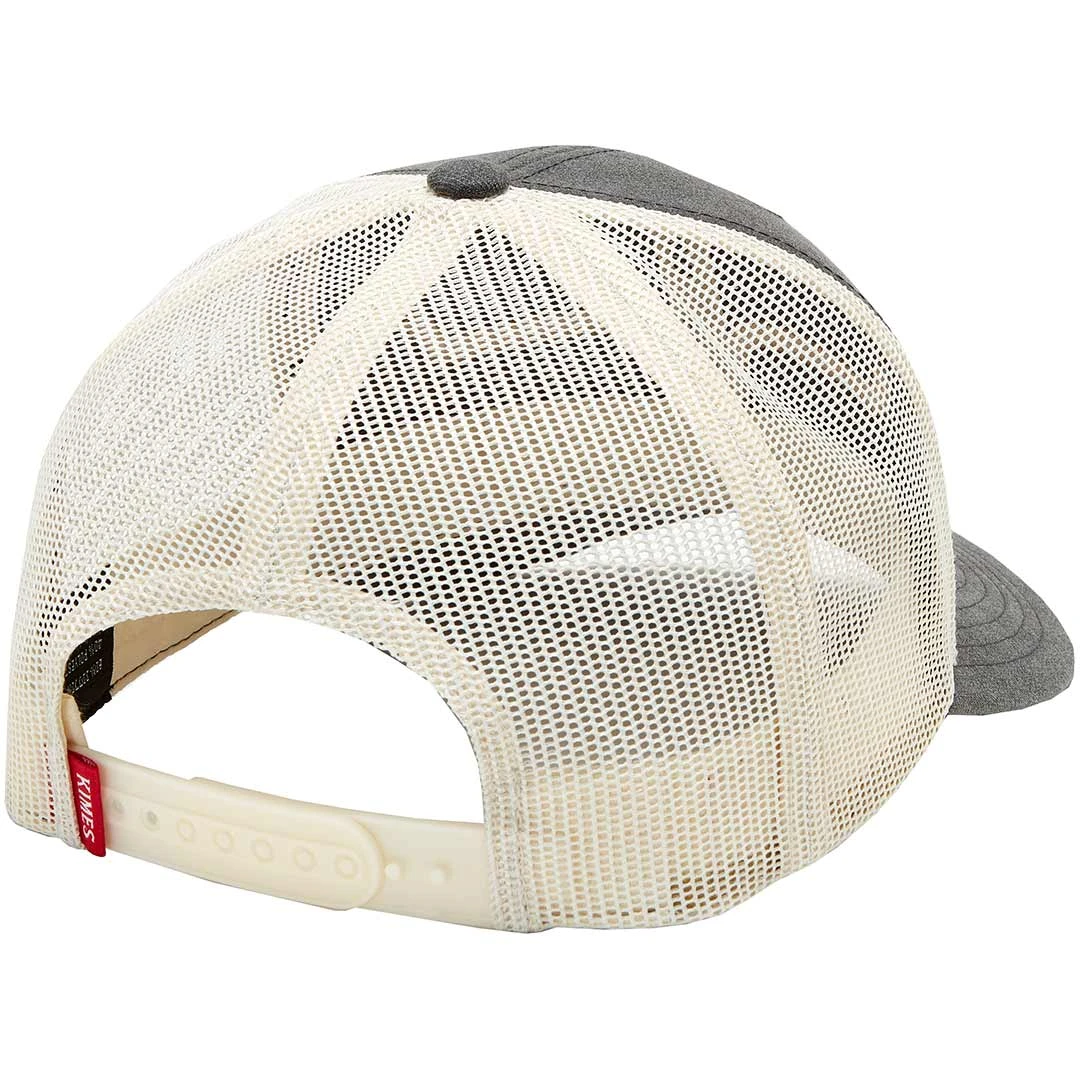 The Weekly trucker cap from Kimes Ranch gets an upgrade. This cap features 6 panel construction, a white mesh back, snap back closure, embroidered contrasting logo on the front and a curved bill.