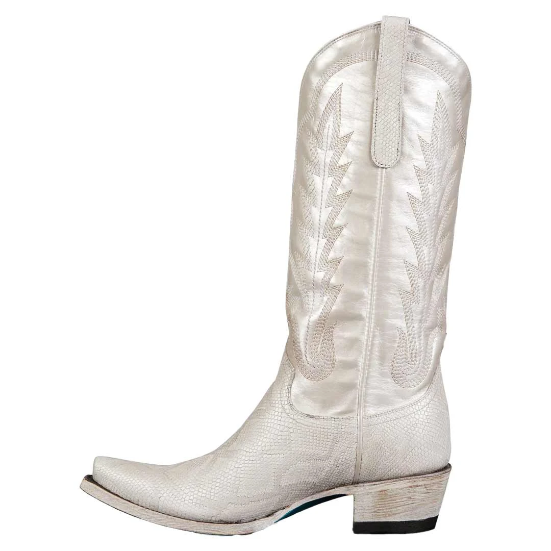 - Meet the Lexi Rogue, a beautiful and elegant cowgirl boot that is perfect for weddings and beyond. With a pearlescent white upper and a pearl white python foot, these boots are sure to turn heads. Designed with the modern woman in mind, the Lexi Rogue is the perfect choice for anyone looking to add some high fashion to their western wardrobe. Step up your cowgirl game with Lexi Rogue. Elegance untamed. She’s as bridal ready as she is fierce and she pairs well with your wardrobe.
