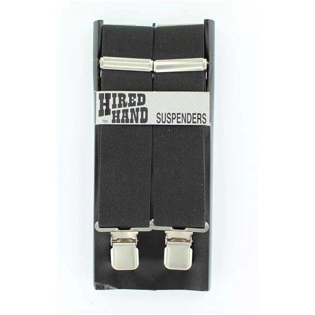 These suspenders by M&F Western Products are made of an elastic fabric for great support. Straps adjustable for that perfect fit. Leather reinforcement patch at cross. Gripper type fasteners
