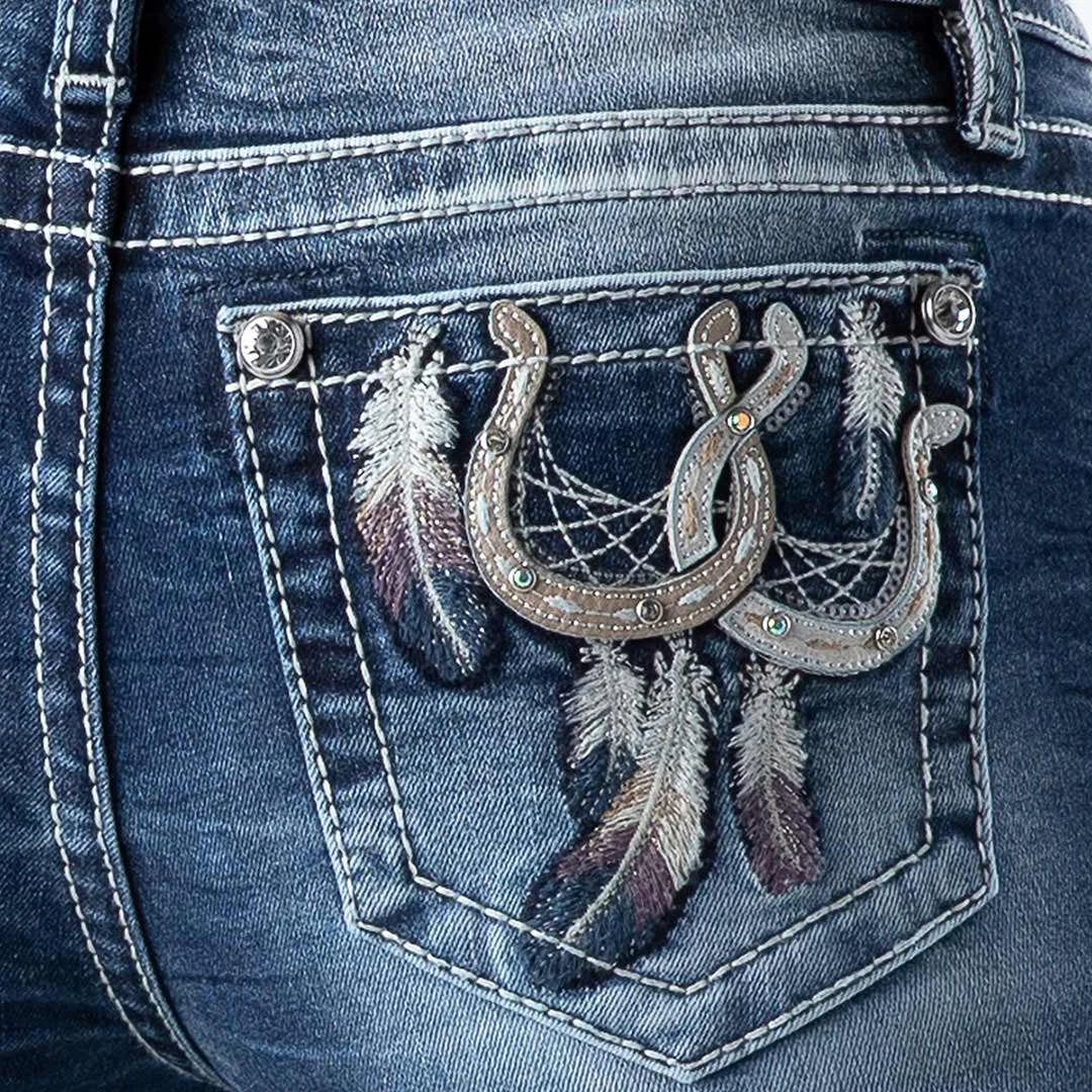 Miss Me Women’s Horseshoe Feather Bootcut Jeans