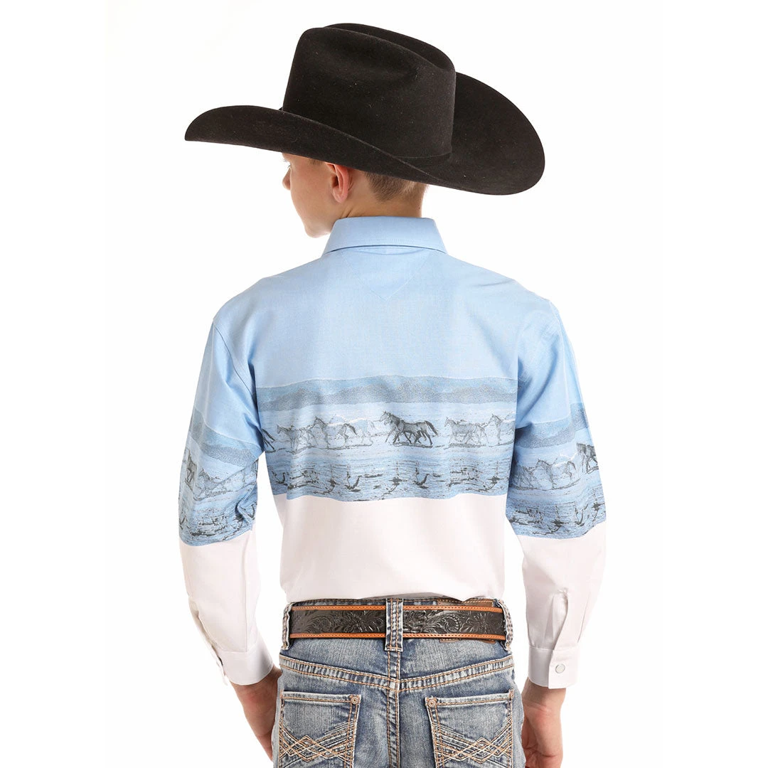 Panhandle Boys’ Galloping Horse Border Print Shirt