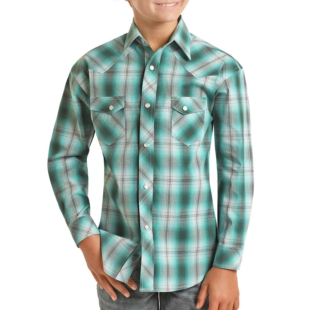 Rock & Roll Cowboy Boys’ Plaid Print Snap Shirt