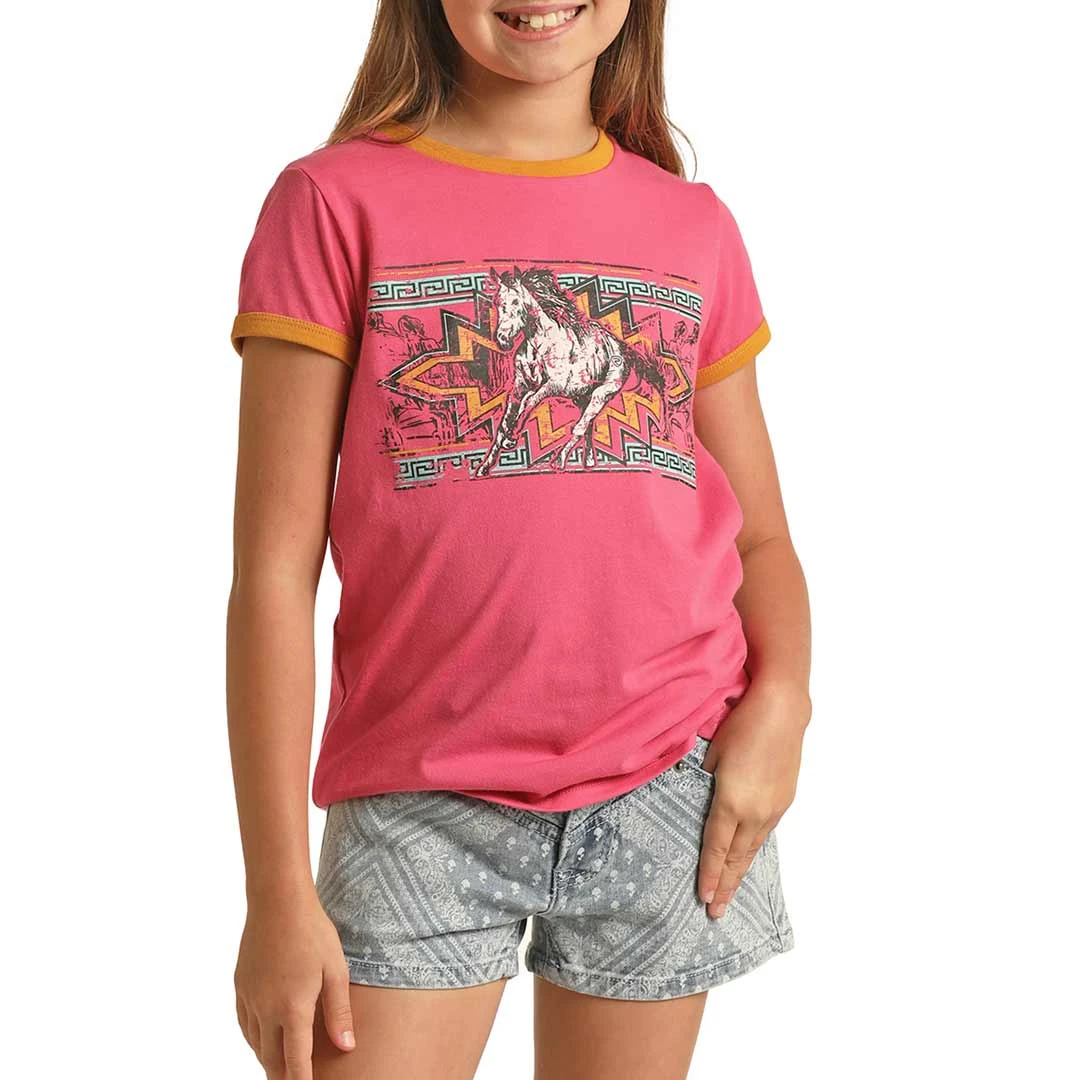 Rock & Roll Cowgirl Girls’ Horse Graphic Ringer T-Shirt