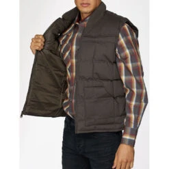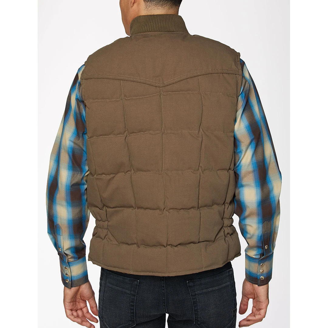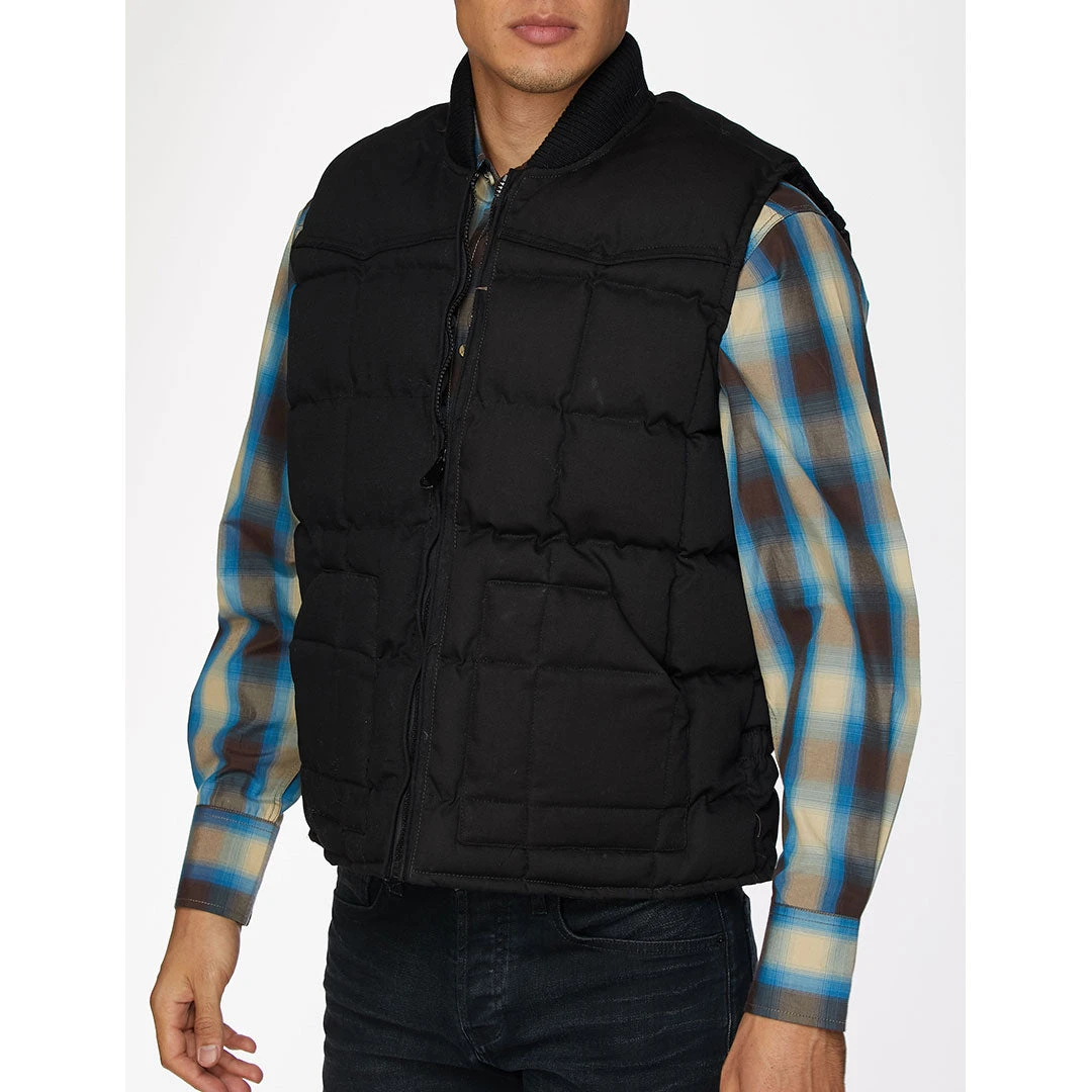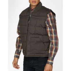 From Rodeo Clothing this is a quilted down men’s winter vest. It is made of soft poly/cotton with a quilted finish and features single-point front and back yokes for western style.