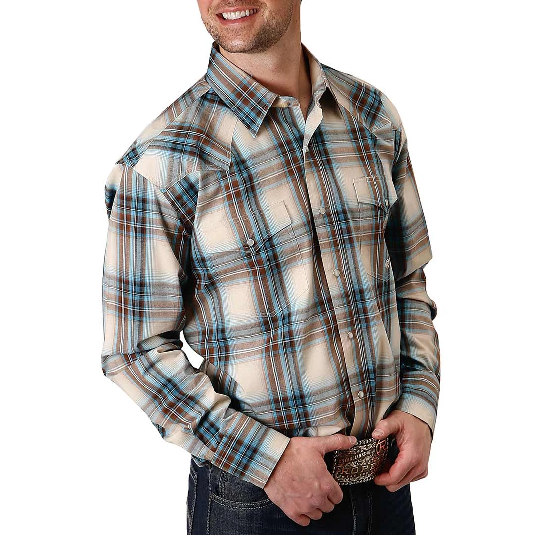 From Roper’s Amarillo Collection this brown and turquoise plaid print shirt adds that extra special piece to your growing shirt collection.