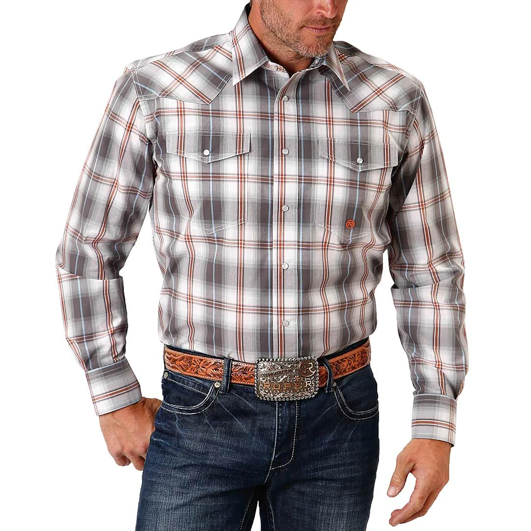 This plaid print men’s shirt from Roper features pointed yokes, 2 snap flap pockets and snap cuffs. Pair with your favourite denim or western dress pants for a night out at your favourite local spot.