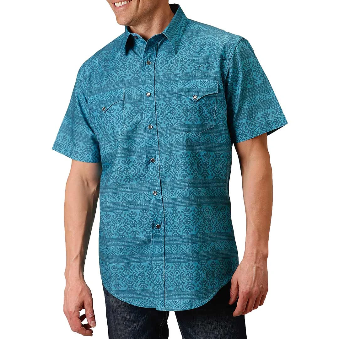 Roper Men’s Short Sleeve Aztec Print Snap Shirt