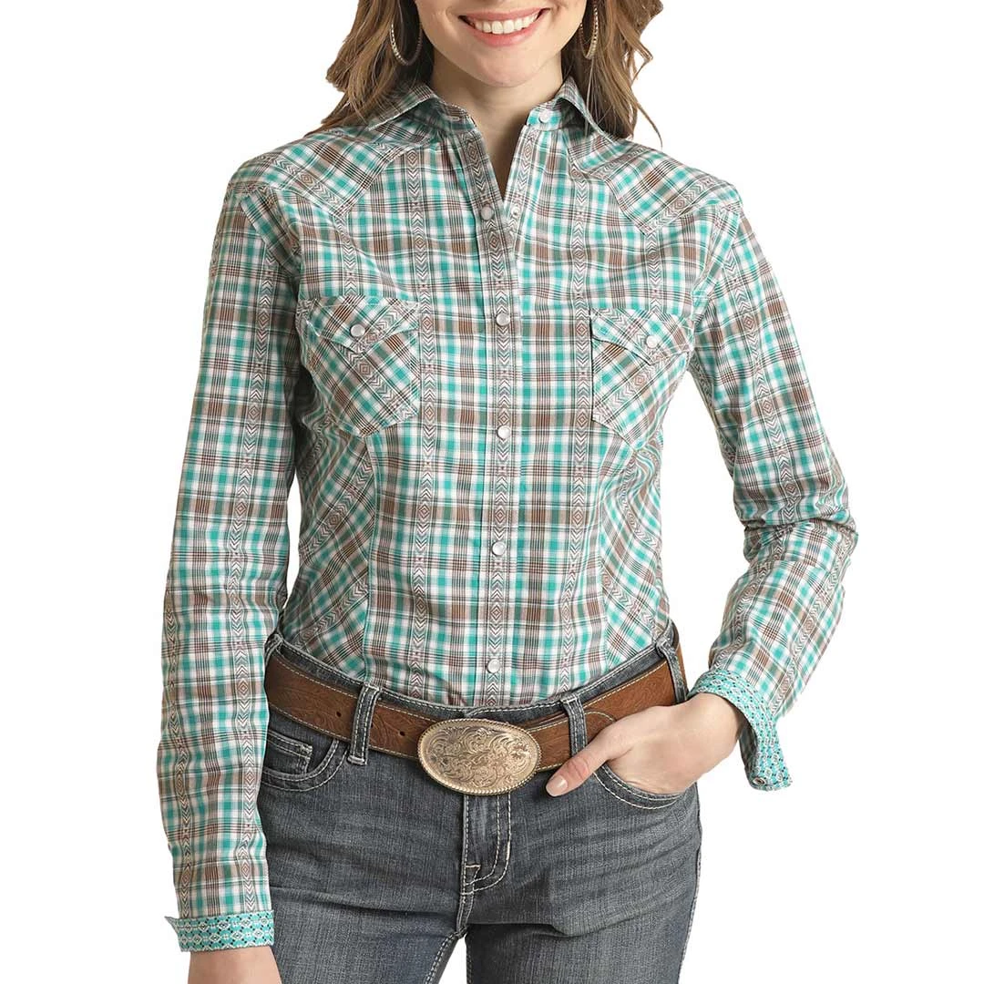 Rough Stock Women’s Arrow Detail Plaid Snap Shirt