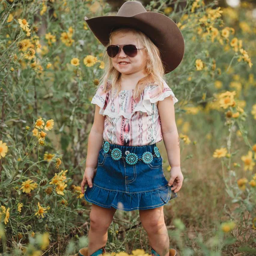This denim skirt from Shea Baby is not only are comfortable for your little one but made from high quality denim. It runs true to size and have elastic in the waist band so it will fit for longer as your child grows.