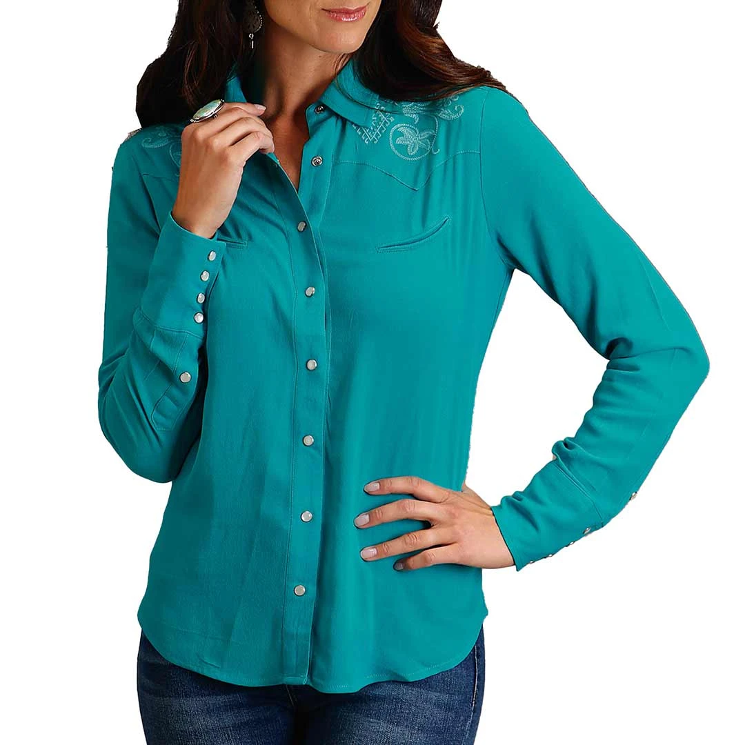 SKU: BGFTB 7233673461808 Categories: CLOTHING, Shirts & Tops, WOMEN Tags: 1150565531BU, Clothing, Clothing:women, Color:Turquoise, Department:Women, Price_type:Regular, SC_Women's_Apparel_Stetson, Shirt_style:Snap, Sleeve_length:Long, Style_number:1150565531BU, Supplier:kar