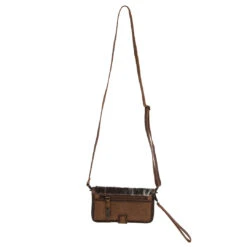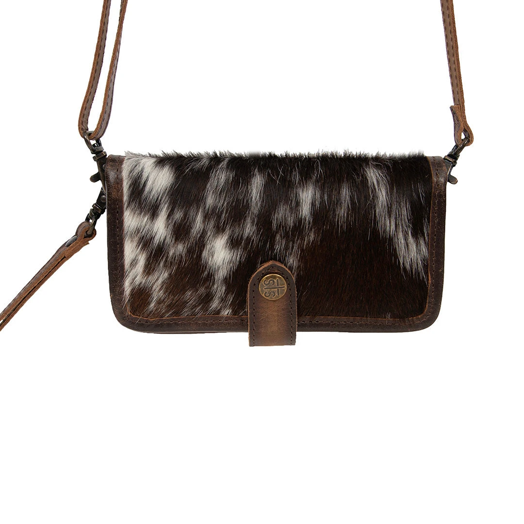 Complement any look with a touch of Western flair with the Cowhide Crossbody Wallet from STS Ranchwear. The wallet features card slots, currency and phone pockets, snap button closure, removable and adjustable crossbody strap and a removable wrist strap to convert to a clutch.