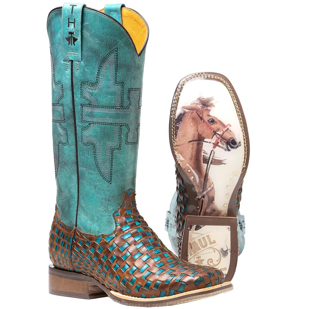 Turn heads in these Tin Haul rodeo team cowgirl boots! They feature a walking heel and square toe, the classics.