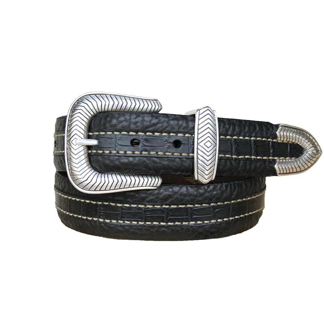 With a distinctive center of croc embossed leather flanked by contrast stitching, the Coloma is sure to turn heads. Handcrafted in our third-generation family-owned factory, this American bison belt also features silver plated buckle, keepers, and tip with distinctive details.