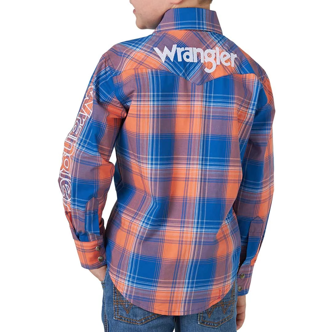 Wrangler Boys’ Plaid Logo Western Snap Shirt
