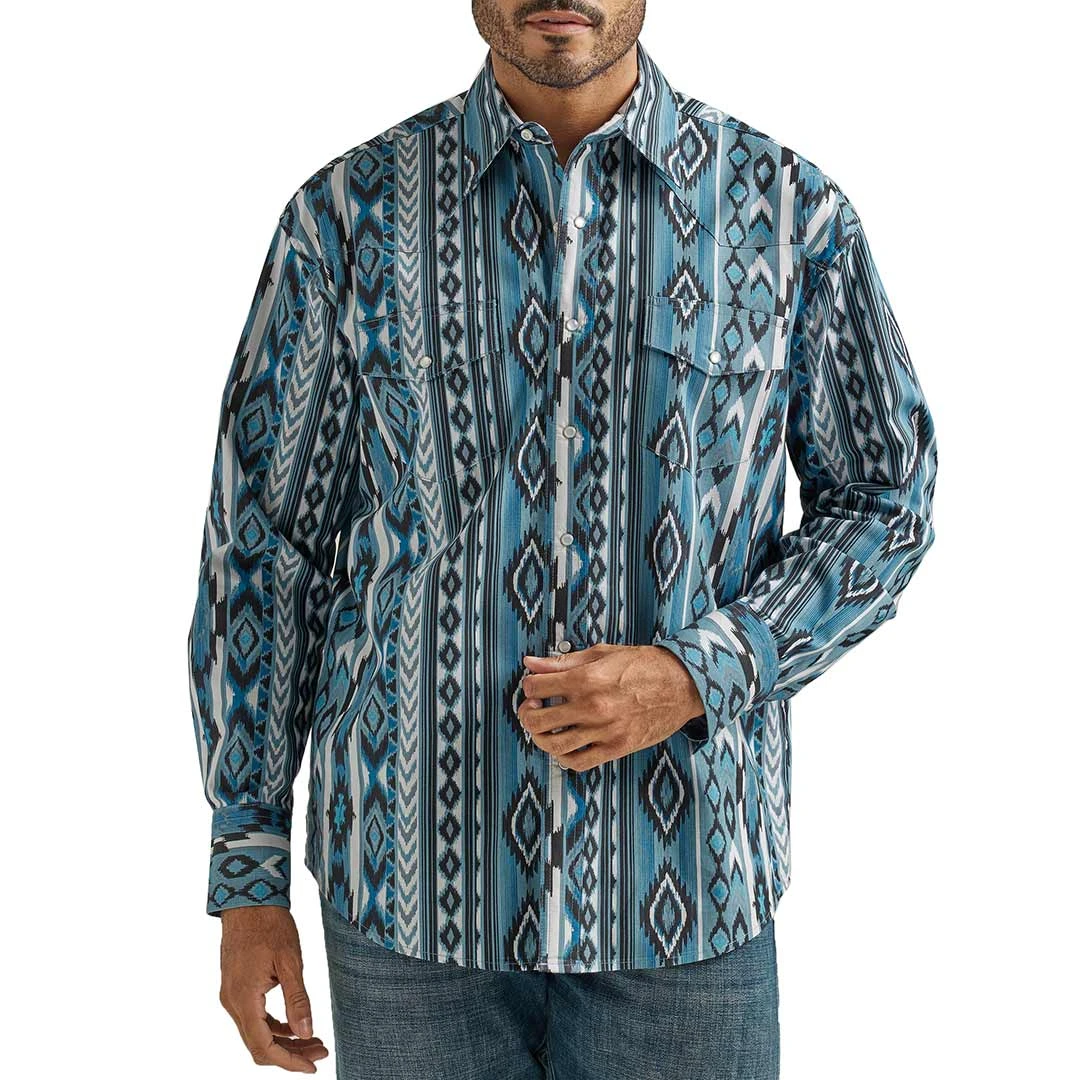 Wrangler Men’s Checotah Aztec Print Snap Shirt