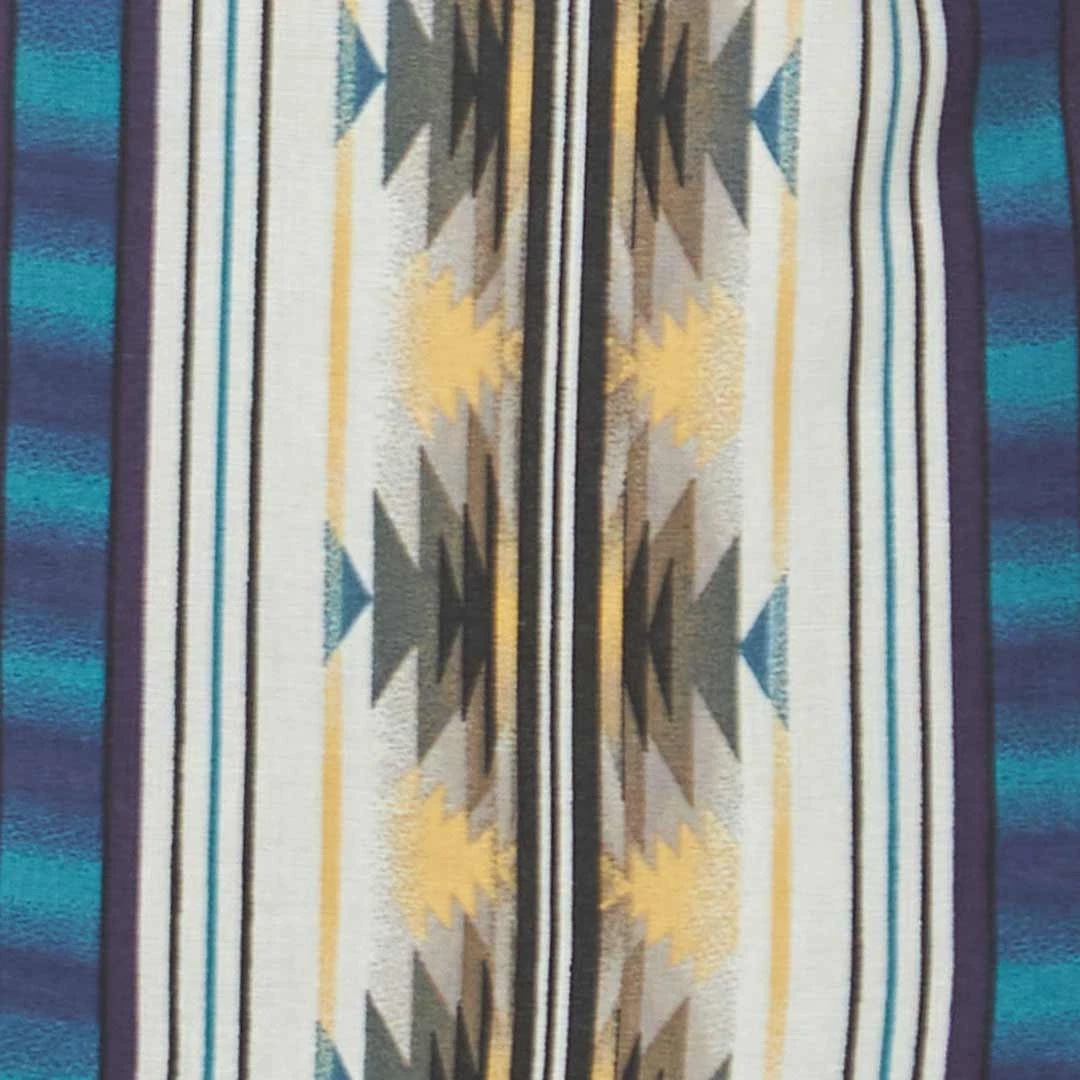Bright Navajo-inspired prints take center stage on this well-made, comfortable shirt from Wrangler. Easy to dress up or down, it has authentic Western yokes, snap flap pockets and snap cuffs.