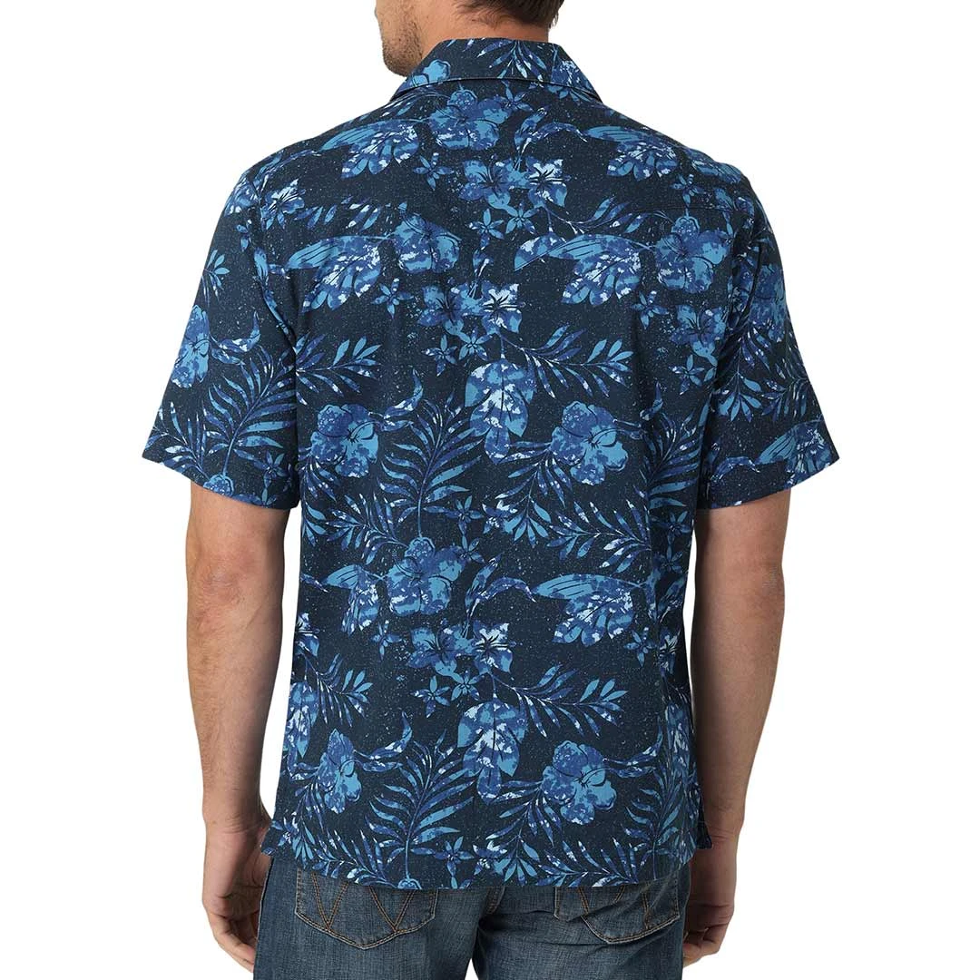 Wrangler Men’s Coconut Cowboy Lush Leaf Print Short Sleeve Snap Camp Shirt