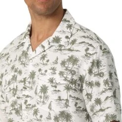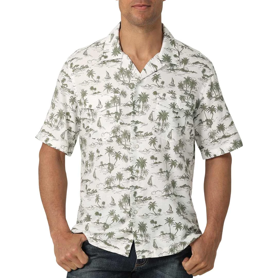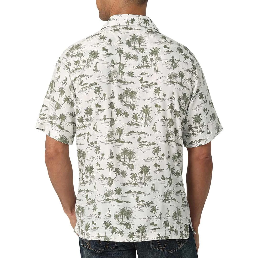 Wrangler Men’s Coconut Cowboy Palmetto Print Short Sleeve Snap Camp Shirt