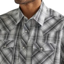 SKU: BGFTB 7235260514352 Category: MEN Tags: 112326471, Clothing, Clothing:men, Color:Grey, Department:Men, Price_type:Regular, SC_Men's_Shirts_Wrangler, Shirt_fit:Slim, Shirt_style:Snap, Sleeve_length:Short, Style_number:112326471, Supplier:wra