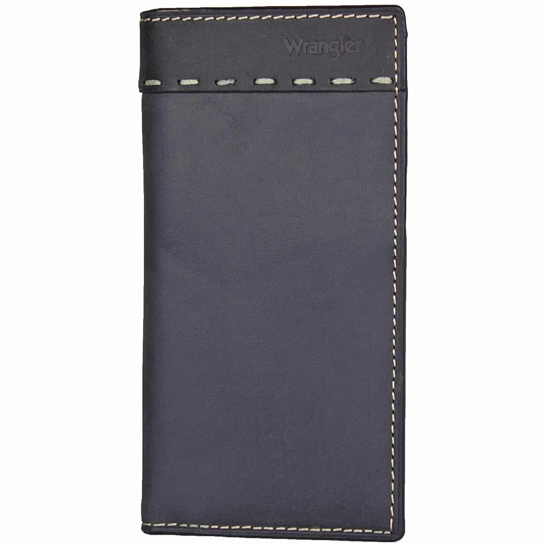 From Spirit Leather Works Wrangler collection, this rodeo style wallet features 8 credit card slots, 1 ID window, 3 slip pockets, 1 money compartment, stitch detailing and an embossed Wrangler logo.