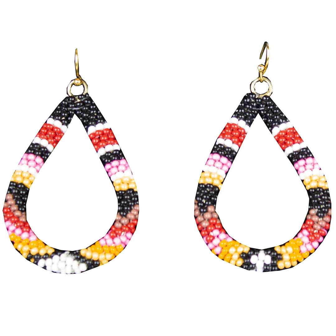 Wyo-Horse Beaded Serape Teardrop Loop Earrings